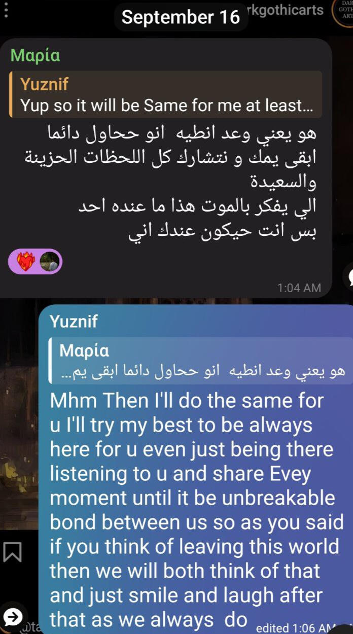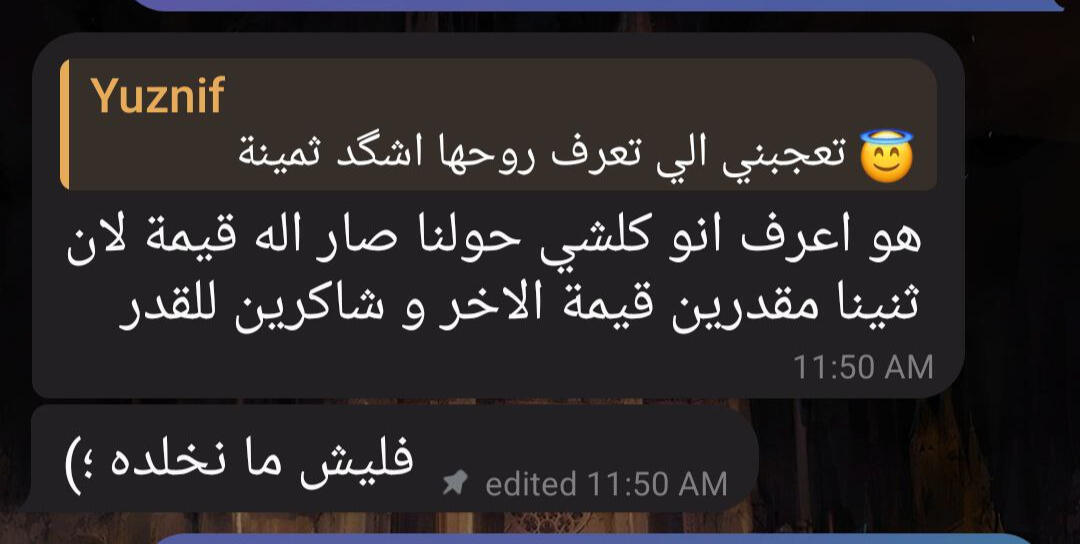 اتمنى گدرت احقق ولو 1% من أمنيتك و رغبتك ب انو يكون عندك ذكريات مخلده حلوة , رح نگدر نضيف كلشي هنا وبأي وقت , شكرا للحظات الي قضيناها سوه لحد لأن ولكل شعور